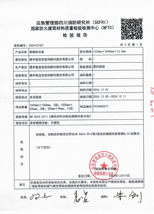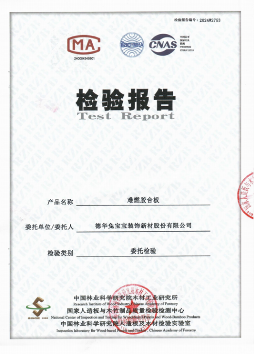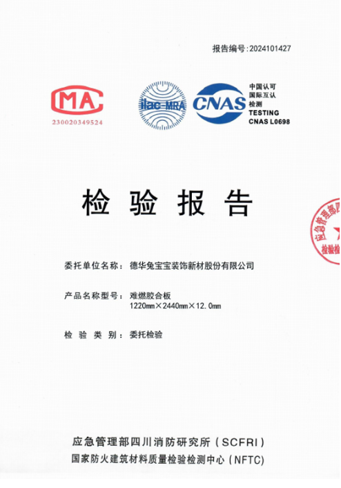 品质卓越,安全无忧|兔宝宝难燃板公检咸阳站检测报告出炉!