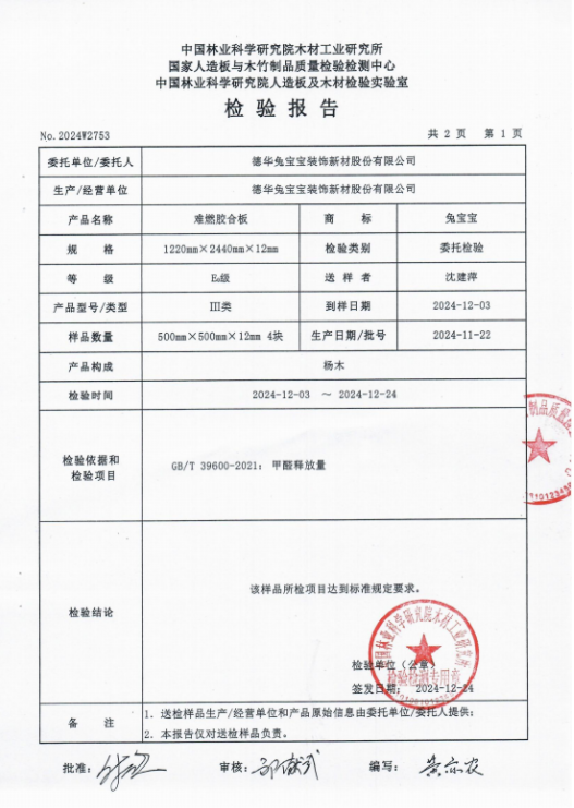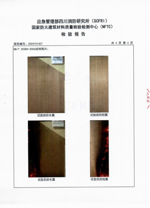 近日,收到了国家防火建筑材料质量监督检验中心、国家人造板与木竹制品质量监督检验中心的检测报告。下附报告,快一起看看吧!