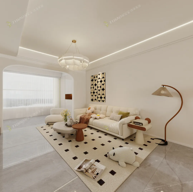 云朵般的白色沙发、圆融的茶几