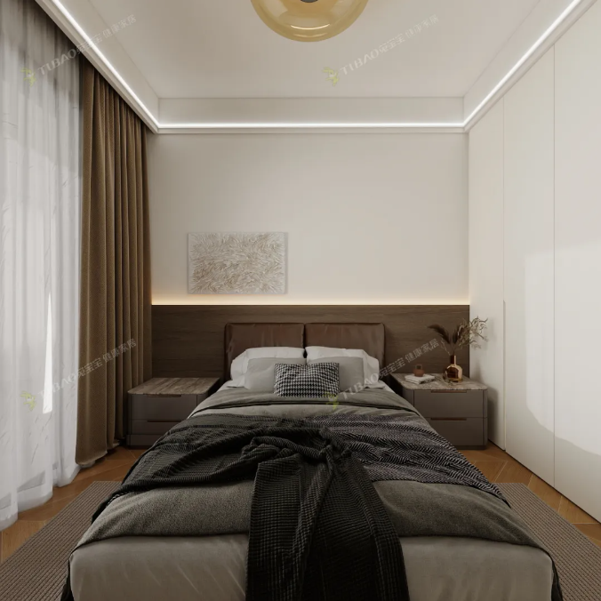 暖棕色床头背景传递温暖质感