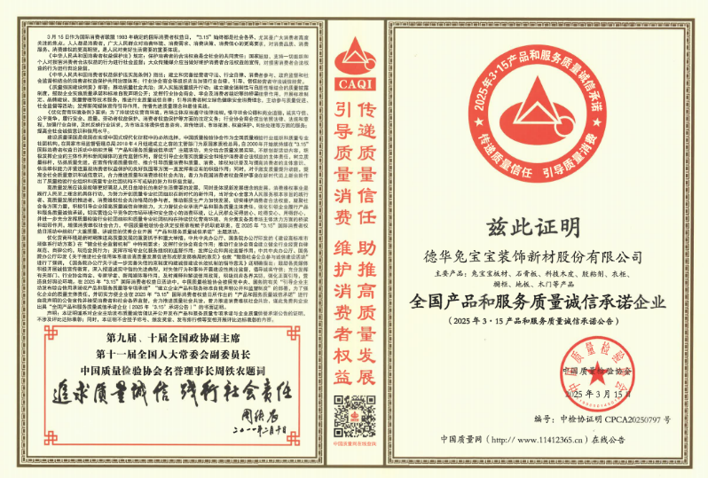 近日,兔宝宝凭借卓越的产品品质与创新技术,荣获“全国产品和服务质量诚信承诺企业”称号。这一权威认可,既是对兔宝宝三十余年深耕质量、坚守匠心的高度肯定,更是其以消费者需求为导向、以科技创新为引擎的发展理念的有力印证。作为家居建材行业的领军企业,兔宝宝始终以科技创新为驱动,致力于打造绿色、环保、可持续发展的家居建材产品。
