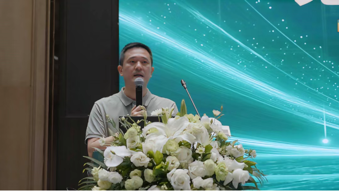 随后,经销商代表——龙之星国际贸易(海口)有限公司总经理乐罗星先生登台致辞。作为兔宝宝在华南地区的核心战略合作伙伴,乐总在发言中深情回顾了与品牌多年来的合作历程,并对兔宝宝产品品质与服务体系给予了高度评价。