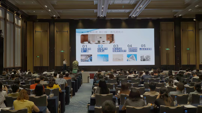在会议的战略分享环节,兔宝宝张艳华女士为与会嘉宾带来了《门墙柜系统运营策略》的专题解读。张女士从消费趋势、产品搭配、终端展示等多个维度,系统性地阐述了门墙柜一体化解决方案的运营要点。她特别强调,在当前消费升级的背景下,提供整体空间解决方案已成为提升客单价的关键,并通过多个成功案例展示了如何通过场景化营销打动消费者。