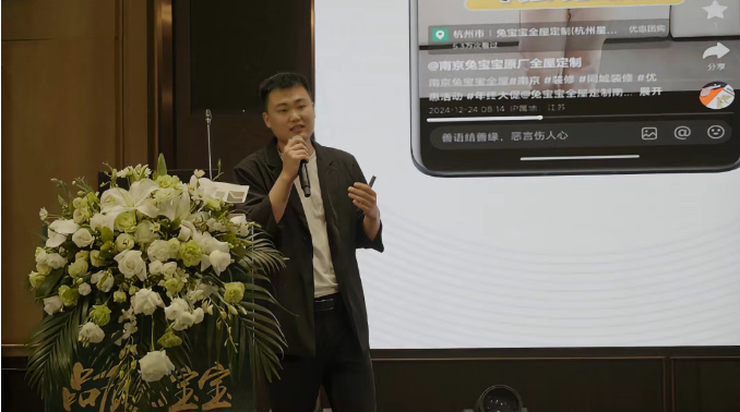 在数字化营销专题环节,兔宝宝多赢网络运营刘冬雪先生以《抖音小红书线上运营》为主题进行了精彩分享。刘先生结合当前市场趋势分析指出,随着消费习惯的数字化转型,布局新零售渠道已成为家居建材行业的必然选择。他通过实际案例展示了如何借助抖音、小红书等平台实现精准获客,并详细解读了内容营销、达人合作等创新玩法,为在场经销商提供了可落地的数字化营销解决方案。