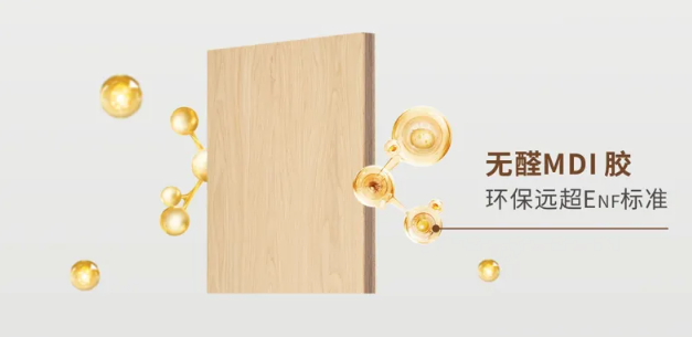 2、无醛MDI胶黏剂:MDI属于高强聚氨酯类胶黏剂,因胶水成分不含甲醛,与普通板材常用的脲醛胶、酚醛胶、三聚氰胺甲醛树脂胶等有本质的区别。