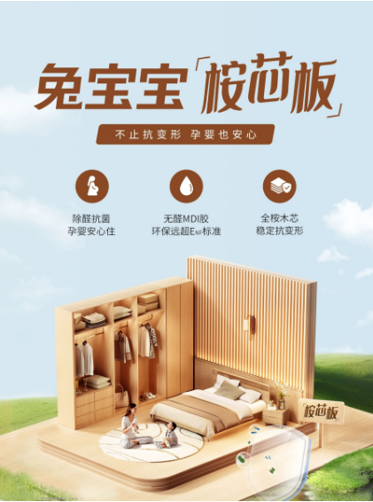当前定制家居赛道陷入“内卷”,但内卷的本质是产品同质化。当同行还在挖掘多层板潜力时,兔宝宝已经站在了更高的点位,开发了革新性基材——「桉芯板」,一举打破传统板材性能与环保的界限,“不止抗变形,孕婴也安心”,引领行业满足消费升级的更高要求。