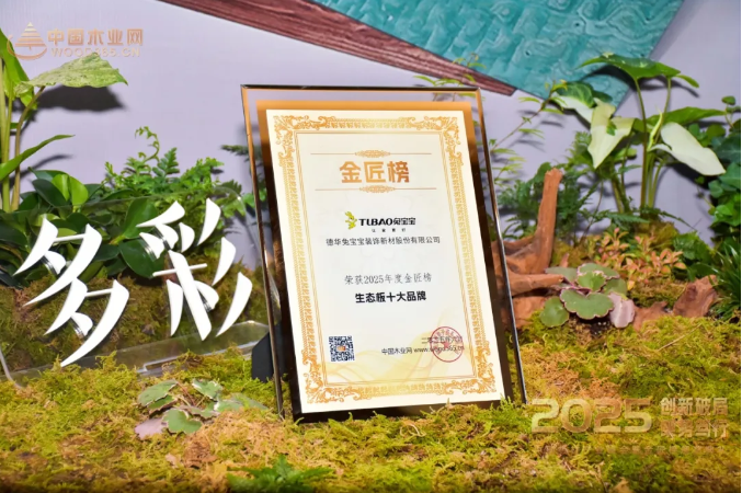 荣誉不仅是企业实力的见证,更是产业竞争力的具象体现。金匠榜颁奖典礼上,兔宝宝凭借强大的综合实力脱颖而出,一举斩获“生态板十大品牌”“环保板材十大品牌”“刨花板十大品牌”“匠心板材十大品牌” 四项重磅荣誉。这些荣誉的背后,正是兔宝宝在核心技术领域勇攀高峰,在商业模式创新上敢为人先,在品牌运营维度上独具匠心,全方位展现中国智造的硬核实力与创新风采。
