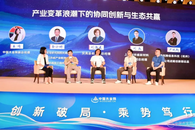 行业的持续发展,离不开企业间的深度交流与紧密合作。在产业链论坛环节,思想的火花不断迸发,成为推动产业进步的强大动力。作为行业领军者,兔宝宝在科研领域始终走在前列,无论是ENF+环保等级的突破,还是功能性板材的研发,都引领着行业发展方向。