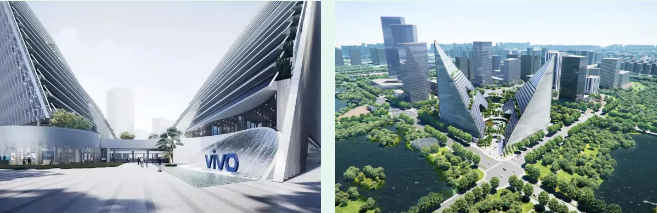 在杭州未来科技城的核心区域,一座总建筑面积达32.6万平方米的"V"型地标建筑正拔地而起——杭州vivo全球AI研发中心。杭州vivo全球AI研发中心不仅是技术创新的高地,更是建筑安全的标杆。项目总投资21.5亿元,由两栋分别高159.75米和134.65米的三角几何形主楼构成,围绕着圆形下沉庭院,形成极具辨识度的建筑视觉。独特的"V"型幕墙设计融合了山水江南的意境。此建筑的设计也遵循了vivo的企业文化,不仅在视觉上体现vivo“有为有趣”的品牌调性,在节能、节水、减少二氧化碳排放、提高室内生活品质,以及材质、智能方面更有突出的表现。
