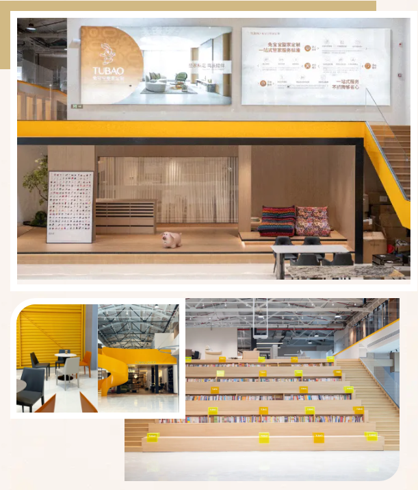 兔宝宝武林之星1号店打破传统零售模式,以九大功能区域重新定义“逛店”的含义。重视品牌与消费者、产品与生活的极具温度的情感连接。店内特别设置阶梯读书区与休闲咖啡厅,让顾客在挑选家装材料之余,可随时小憩片刻,品一杯咖啡、翻阅家居杂志,感受慢节奏生活中的美学意趣。原本繁琐的装修选材,由此升级成一场放松身心的美学之旅。