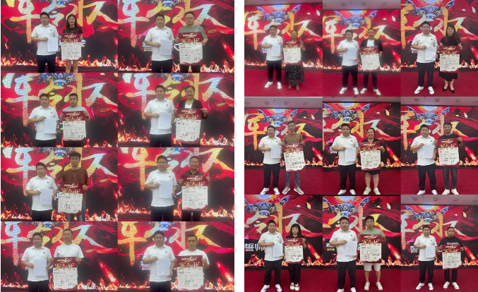 随后,兔宝宝商学院饰材活动运营部吴嘉诚做活动启动宣导,各经销商在为期一个月的活动时间内向着目标进行军令状签订,军令如山,誓言已宣!众志成城,干劲十足,共筑业绩之峰,誓不辜负期望!