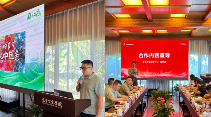 下午,交流会于洛漾半岛正式拉开帷幕,双方的重要领导皆出席并参与交流。会议伊始,兔宝宝本部研究院新产品开发管理部经理陈涛为大家带来了24款新品花色推介,花色主题为“萬物 廿四”,其汲取自然万物的灵感,实现了家居饰面在视觉与触觉上的全新体验。