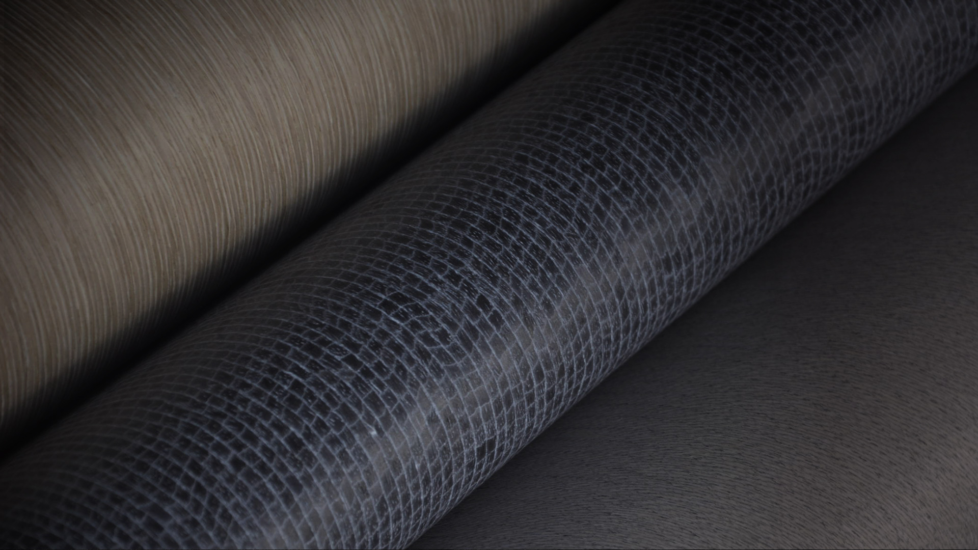 根据天然珍贵木材的纹理、色泽,通过电脑设计识别出天然木皮的纹理色泽,使用速生材进行染色,开发相应的模具,再通过电脑三维重组形成天然木材原有的纹理,最终形成仿生木皮。